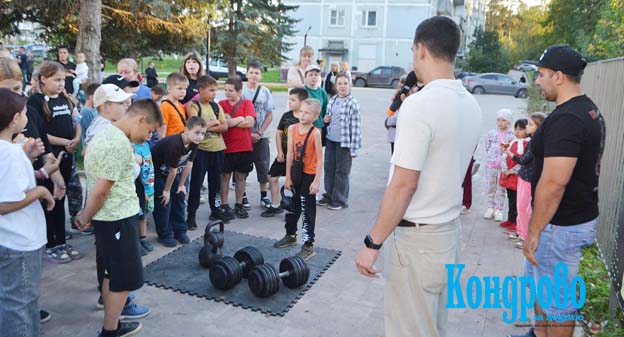 Тренер-спортсмен фитнес-клуба «Жим-108» Алексей Патрахаев провел с пришедшими ребятами беседы о пользе здорового образа жизни и рассказал, что спортом и физкультурой нужно заниматься с детства.