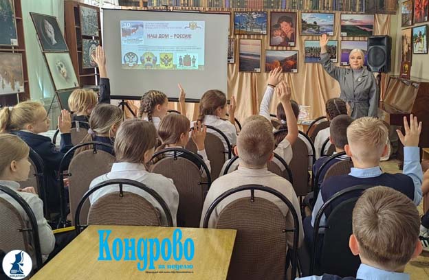 30 сентября, в День воссоединения Донецкой и Луганской Народных Республик, Запорожской и Херсонской областей с Российской Федерацией, в читальном зале Центральной районной библиотеки для пятиклассников Кондровской средней школы №1 прошёл час истории «Наш дом – Россия!»