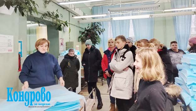 Ребятам рассказали о том, что фабрика осуществляет пошив одноразовой медицинской одежды и белья, изготавливаемого из современных нетканых материалов. Немного узнали об истории предприятия.