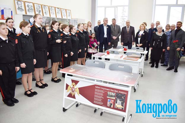 6 февраля в Кондровской средней школе №3 состоялось важное событие. В этот день в рамках Всероссийского образовательного проекта здесь торжественно открыли Парту Героя и увековечили память выпускника кадетского класса, кадрового офицера, лейтенанта Даниила Зайцева. Он погиб в ходе проведения специальной военной операции.