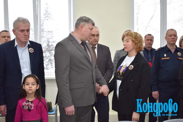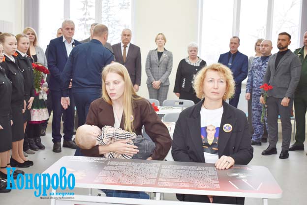 В школьном кабинете – учителя, учащиеся кадетских классов, родные героя: мама Виктория Николаевна, сестра Екатерина, жена Зоя с маленьким сыном Виталием. Среди приглашённых – почётные гости: региональный министр спорта О.Э.Сердюков, глава Дзержинского муниципального округа Е.О.Вирков, заместитель начальника Управления Росгвардии по Калужской области по военно-политической работе полковник Р.С.Мартынов, военный комиссар Дзержинского района майор А.Ю.Поляков, начальник отдела Росгвардии майор полиции О.Е.Меркулов, председатель районного Совета ветеранов Н.Н.Сударикова и другие официальные лица.
