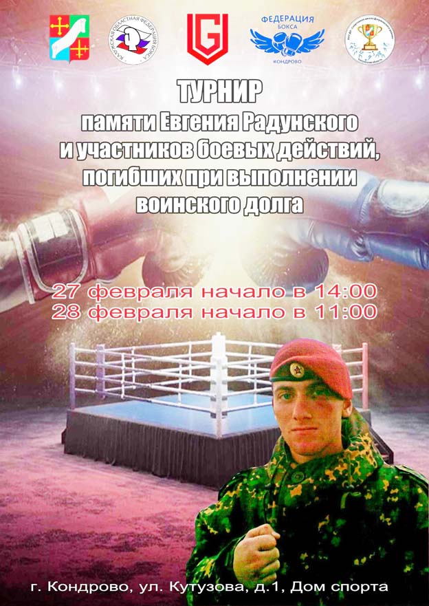 Приглашаем принять участие и поддержать турнир по боксу, посвященный светлой памяти Евгения Радунского и наших героев, погибших при исполнении воинского долга.